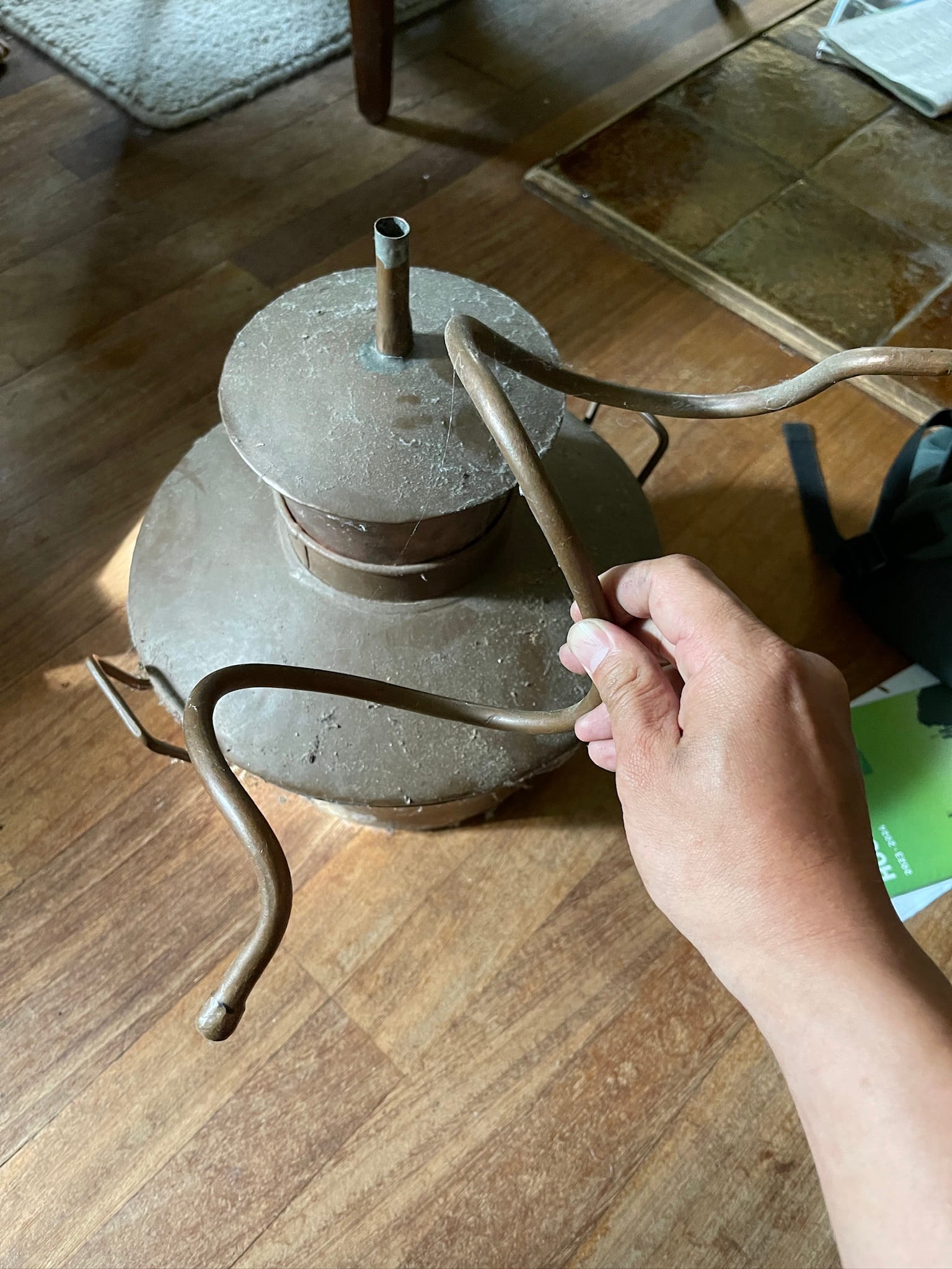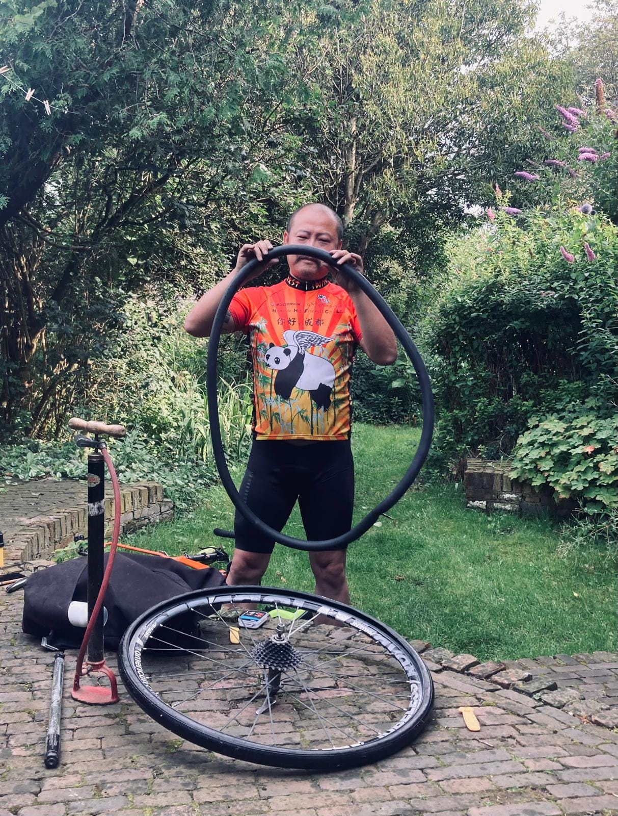 After patching my rear tyre, Piet takes me to his garage to show me his bike, which is almost 20-year old. And then he showed me the distilling port parts in the garage, maybe we can distill some fermented fruit wine with the fruits in the garden in future.