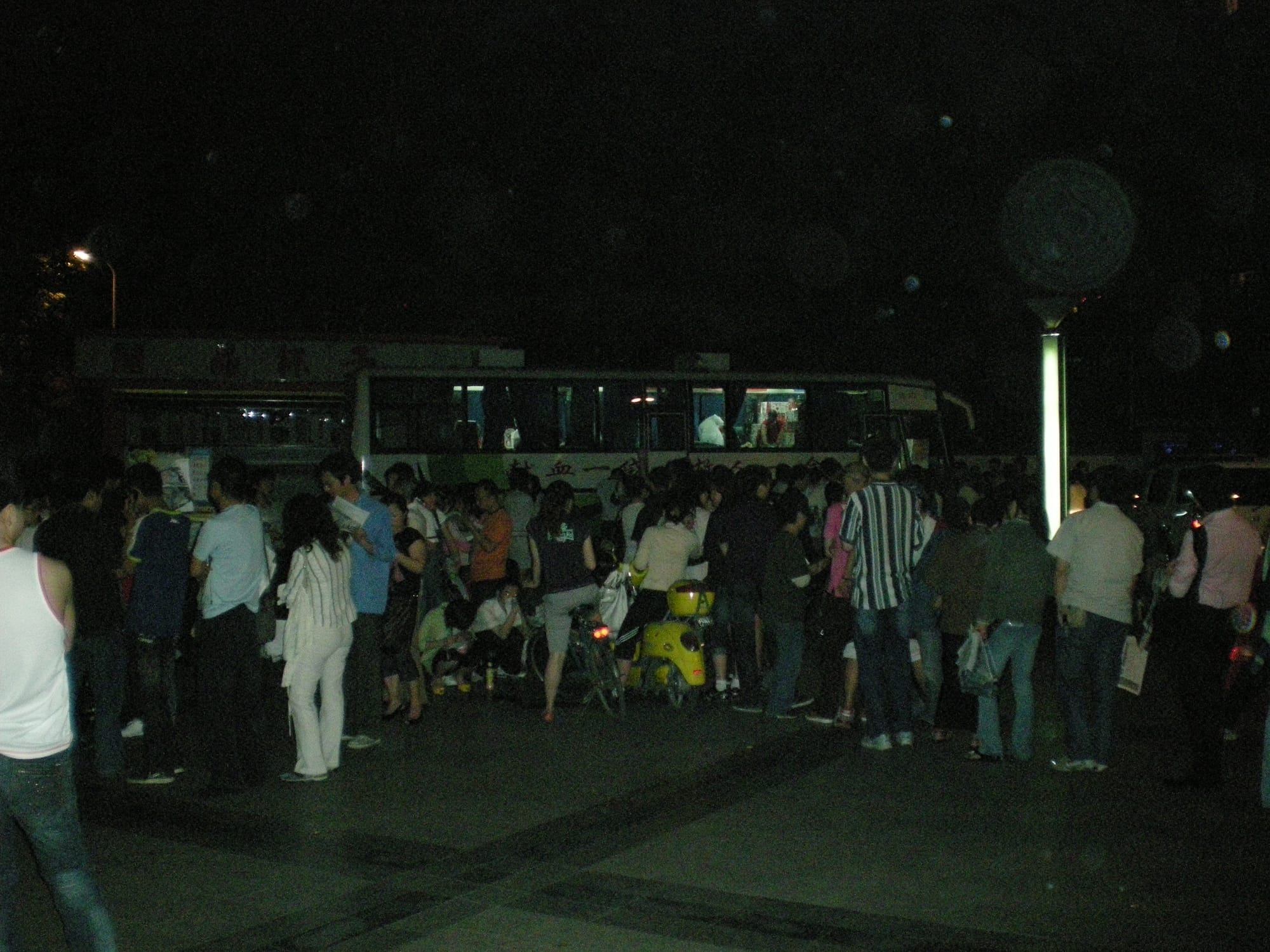 Out in the parking lot, I looked across the street at the towering Minshan Hotel, still swaying like it had a bit too much to drink. Then, crash—a couple of windowpanes from the upper floors came shattering down, exploding on the pavement with a deafening bang. People nearby screamed and scrambled in panic.