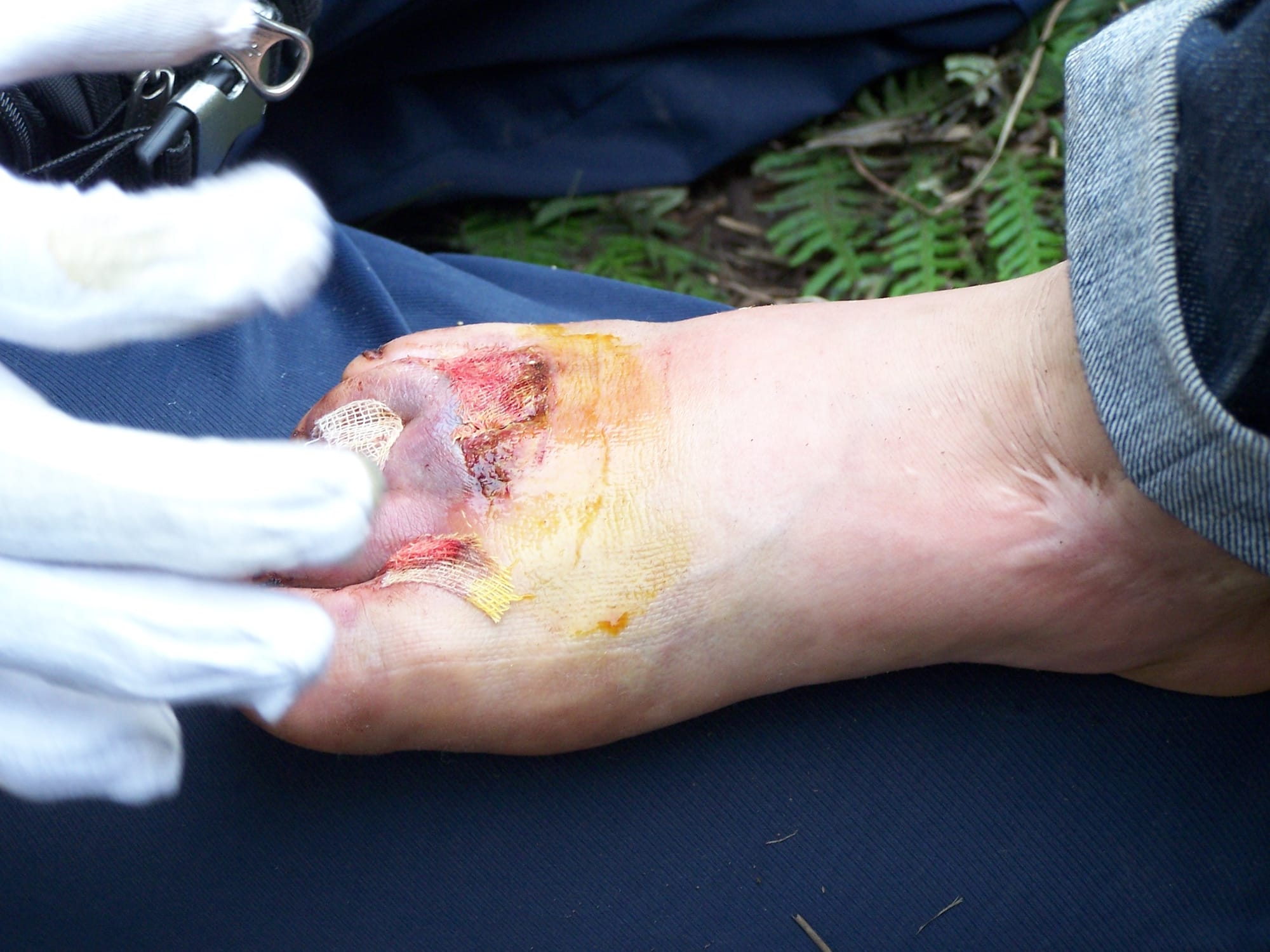 The grandfather descending the mountain on foot, a nail embedded in his collarbone.