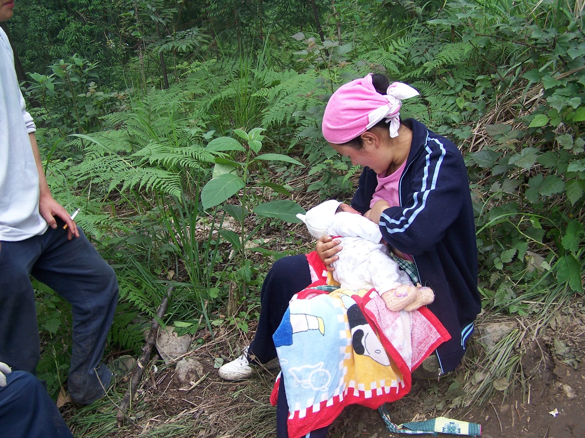 The mother who collapsed at the Red Cross tent after walking days with a newborn in her arms.