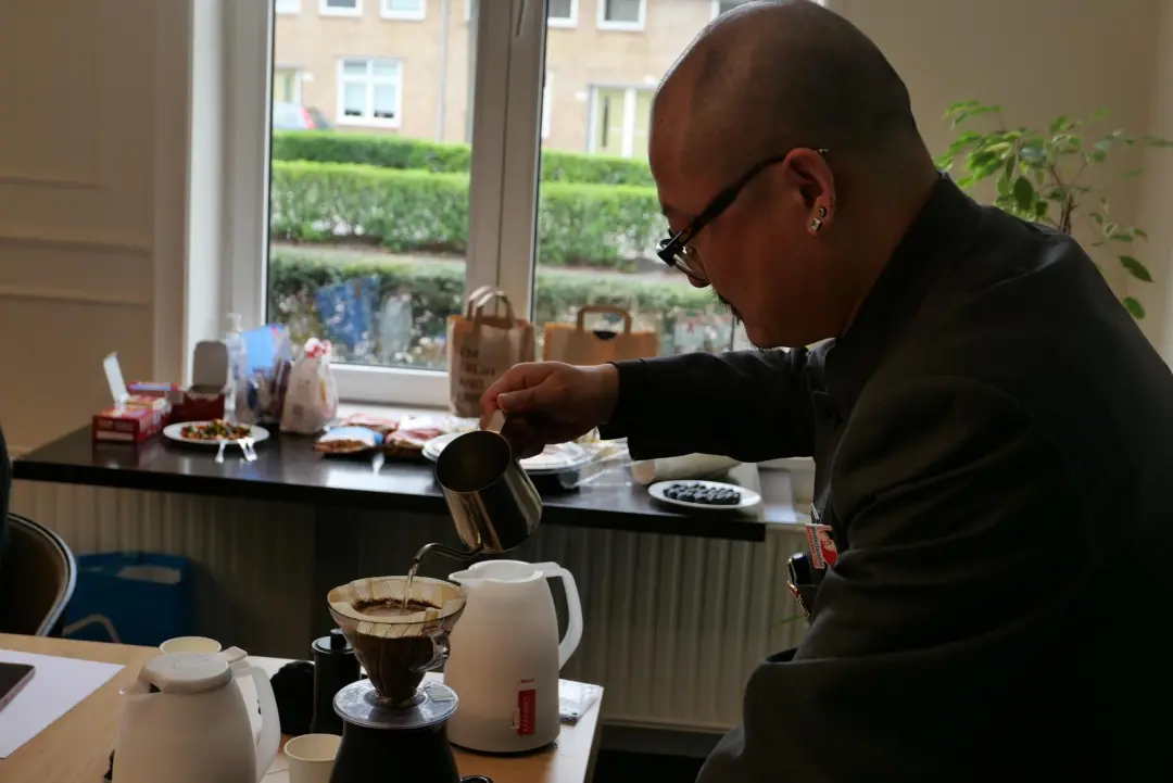 伍世凌先生首先用相同的咖啡豆、不同的研磨度为大家精心冲泡了两杯手冲咖啡,体味咖啡的细腻和变化之美,为接下来的品鉴活动营造了轻松愉快的氛围。