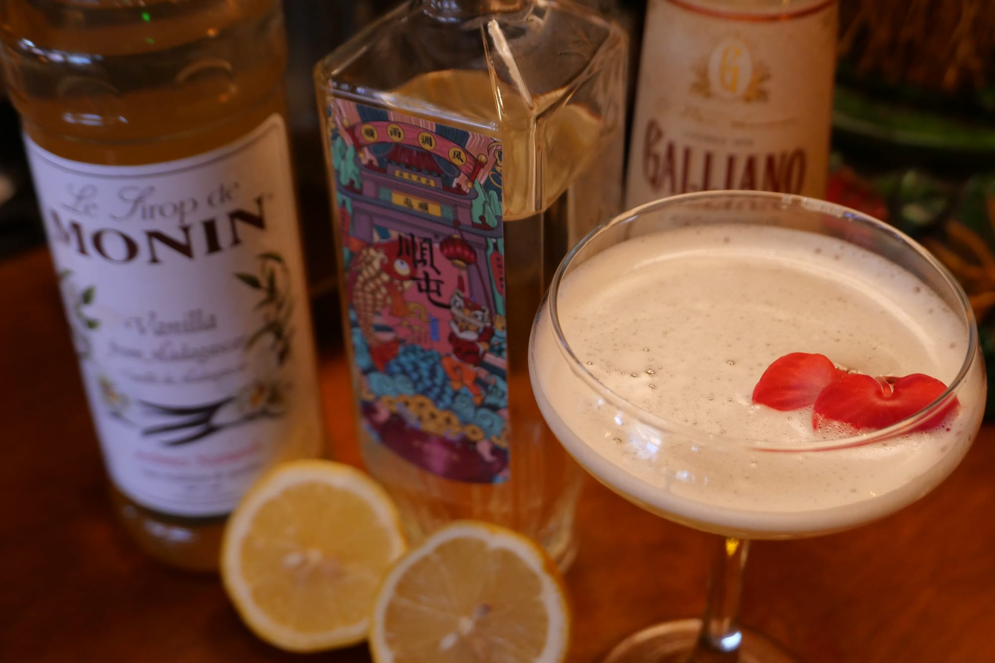 On the palate, the drink unfolds like a journey. The bold, distinctive flavor of Baijiu leads the charge, its intensity softened by the silky smoothness of Monin Vanilla. The Galliano introduces a burst of herbal warmth, with its blend of Mediterranean spices and anise, while the lemon juice provides a sharp counterpoint, cutting through the richness and leaving a crisp, clean finish. The edible flowers add a subtle, fragrant note, making each sip a well-rounded experience.